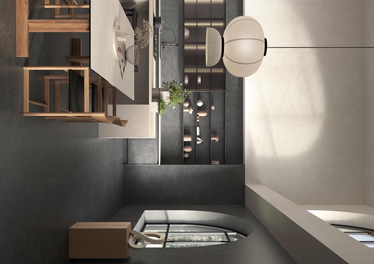 Vulcano Laminam, o nuanta cu fondul suprafetei in tonuri accentuate de negru, transmite un apel textural, un impact vizual și un caracter îndrăzneț, imbogatind spațiile elegante si transformându-le în oaze de liniște. Suprafața sa structurata, bogată în pete și vene, surprinde forța și vigoarea pietrei de ardezie neagra care a fost sursa inspiratiei sale.