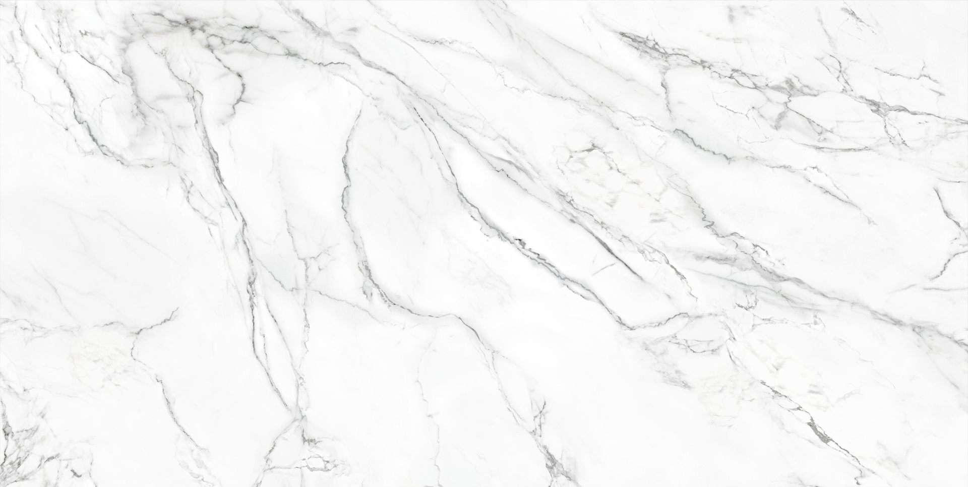 Blat din quartz compozit cu design Podima, remarcat printr-un fundal alb pur, elegant, traversat de vene fine și naturale în nuanțe de gri deschis,
