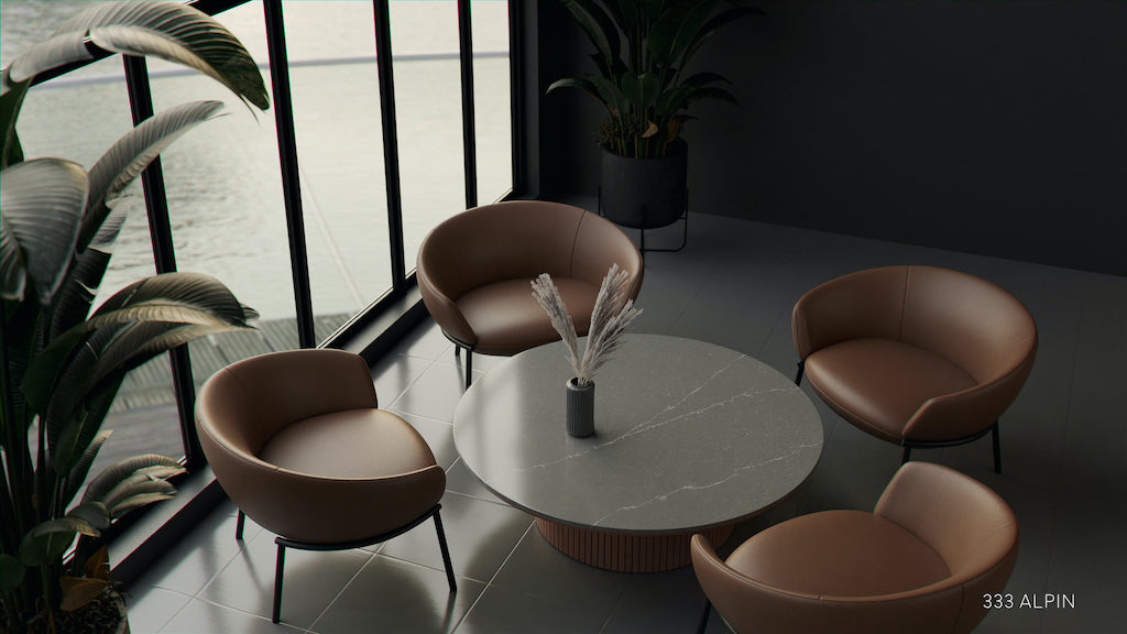 Cu un aspect tip marmură Calacatta, fond gri cu venaturi alb-gri light subtile, blaturile ALPIN sunt perfecte pentru amenajarea: