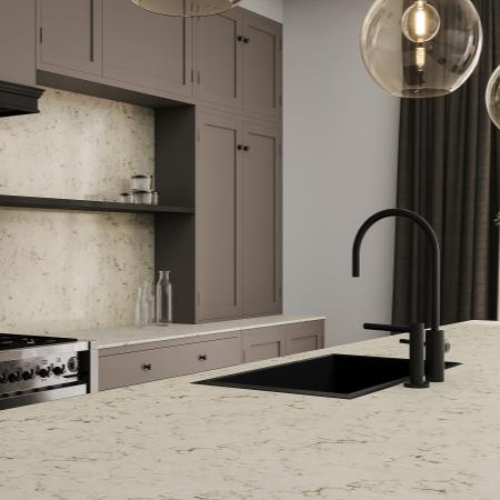 OLIVIA este un model de quartz cu aspect de marmura naturala, care are suprafata cu un fond de culoare beige-crem, brazdata de o venatura pronuntata de culoare crem-maroniu. Produs din gama Premium, confera eleganta incaperilor in care este integrata.