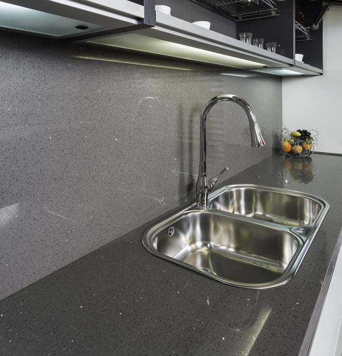 ELVAS este un quartz compozit unicat de culoare gri cu inserții de cristale, ce adaugă o notă de eleganță și rafinament oricărui proiect. Fabricat de Cimstone, acest material premium este perfect pentru cei care doresc să îmbine estetica cu funcționalitatea.