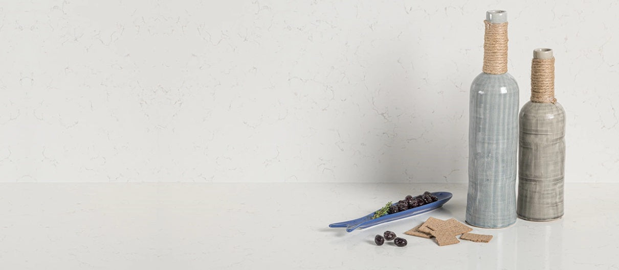 NEBULA, produs de Cimstone , este un quartz compozit premium cu aspect marmorat, având un fond alb delicat și venaturi subtile gri light. Suprafața sa lucioasă îmbină estetica pietrei naturale cu durabilitatea cuarțului compozit.