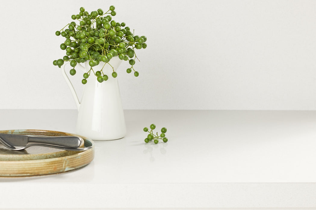 Blat din quartz compozit – alb cu aspect ușor pigmentat
